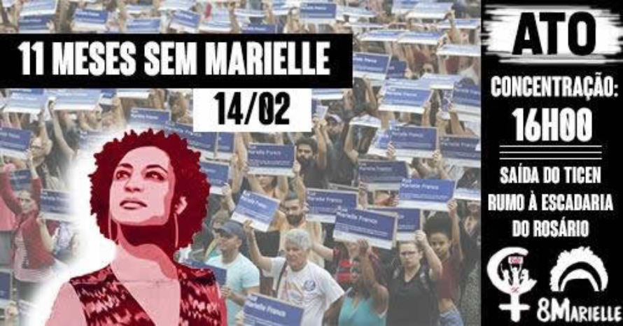 Nesta quinta-feira, 14 de fevereiro, o 8M SC convida todas as mulheres para um grande ato que vai lembrar os 11 meses do assassinato de Marielle Franco. O ato faz parte das atividades preparatórias para a Greve Internacional de Mulheres, no dia 8 de março, que esse ano no Brasil recebe o nome de “Marielle8M Vivas, livres e resistentes”, em homenagem à vereadora, cujo assassinato até hoje continua sem solução.