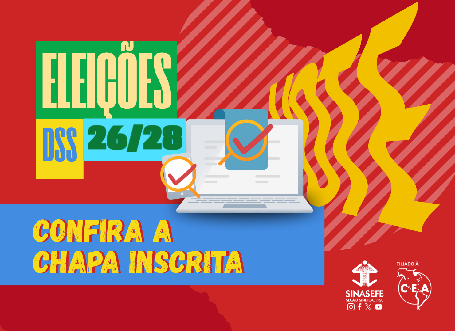 Em cumprimento aos prazos estabelecidos pelo Regulamento Eleitoral, aprovado na assembleia do dia 17/12/25, a Comissão que organiza o processo de eleições para a escolha da nova Diretoria da Seção Sindical IFSC do Sinasefe divulga hoje (09/02/26) a nominata da única chapa inscrita para o pleito: “NOVOS TEMPOS: UNIDADE POR UM IFSC POPULAR”.