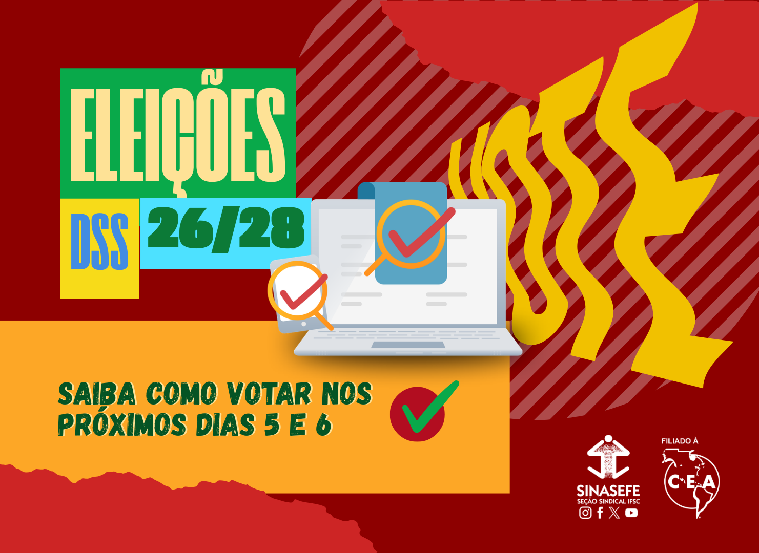 Nesta quinta e sexta-feira (05 e 06/03), os/as sindicalizados/as da Seção IFSC do Sinasefe vão às urnas para referendar a nova diretoria que vai dirigir a entidade pelos próximos dois anos, já que a eleição esse ano conta, novamente, com apenas uma chapa inscrita, denominada “NOVOS TEMPOS: UNIDADE POR UM IFSC POPULAR”.